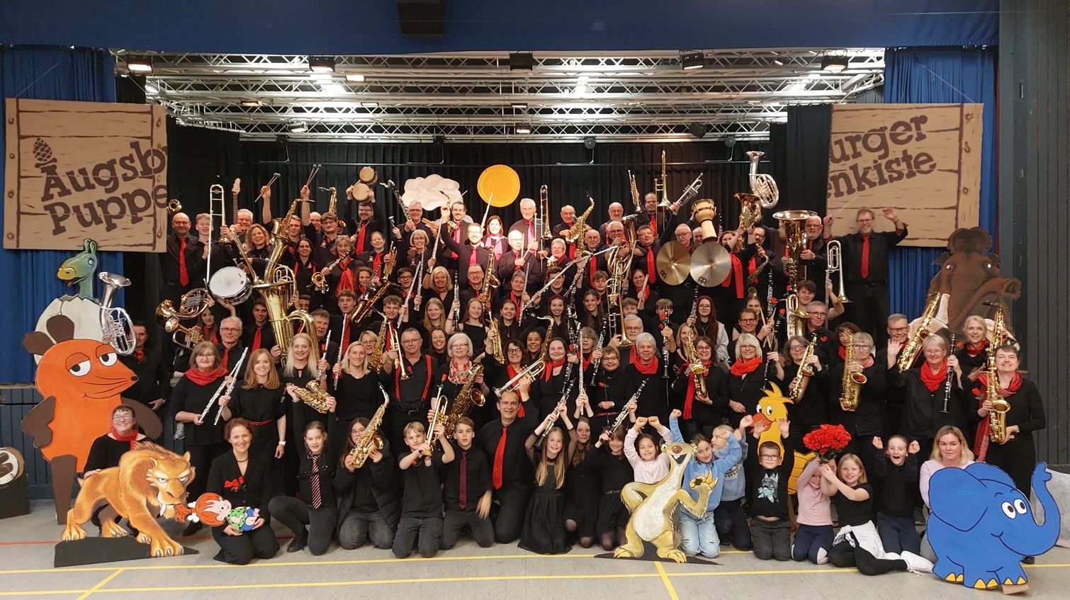 Den Auftakt machte das mit 51 Aktiven besetzte Stammorchester des Vereins unter der Leitung von Florian Eisenhut mit der „Melodie der Maus“ aus der Feder von Hans Posegga, der Erkennungsmelodie der bekannten TV-Serie „Die Sendung mit der Maus“. Die Maus erklärt seit über 50 Jahren in vielen Lach- und Sachgeschichten die Welt. Sie ist dabei nie allein, sondern hat ihre Freunde, die Ente und vor allem den Elefanten, dabei. Im Film „Der Schuh des Manitu“ zeigt sich, dass Freundschaft nicht an Kulturen oder Ethnien gekoppelt ist. Im „Wilden Westen“ haben Abahachi, Häuptling der Apachen, und Ranger als Blutsbrüder viele Abenteuer zu bestehen. Solche Abenteuer können eine Freundschaft ganz schön auf die Probe stellen, aber echte Freundschaft überlebt eben auch das ein oder andere Abenteuer. In einem gleichnamigen, eigenen Arrangement von Dirigent Florian Eisenhut erklangen die bekanntesten Melodien aus diesem Stück Film- und Kinogeschichte.