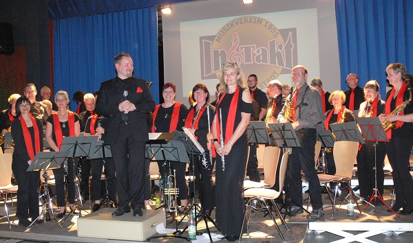 Der Spaßfaktor innerhalb der Proben soll einen genauso großen Stellenwert ein wie die Probendisziplin einnehmen. „Es ist etwas leichter mit Erwachsenen, als mit Kindern“ sagt der Dirigent und betonte, dass beim Abbrechen eines Übungsstückes schneller Ruhe einkehre, als bei Kindern und Jugendlichen. Am 10. September 2007 besuchte uns der Hessische Rundfunk (HR4), um ein Interview mit dem Dirigenten, sowie einigen Musikern aufzunehmen. Bereits am nächsten Tag wurde der Bericht, der im Zusammenhang mit der Bewerbung des Musikvereins zum Thema „Musik 50+“ stand, auf HR4 gesendet. Es war ein gutes Zeichen, dass wir bis dorthin nur wenige Teilnehmer der ursprünglichen Anfängertruppe „verloren“ hatten. Ich möchte meine Entscheidung in die Bläserklasse eingestiegen zu sein, besonders in der Rückschau von heute, als richtig bezeichnen, da man auch im Alter über 40 (die InTakt-Mitglieder-Mehrheit hatte dieses Alter bereits überschritten) etwas Neues lernen kann. Besonders leicht fällt das im Kreise Gleichgesinnter, die ebenfalls „bei Null“ anfangen müssen. Der erste offizielle Auftritt wurde im Übrigen auf der Weihnachtsfeier des Musikvereins 1905 Ober-Wöllstadt am 8. Dezember 2007 mit großem Erfolg absolviert.
